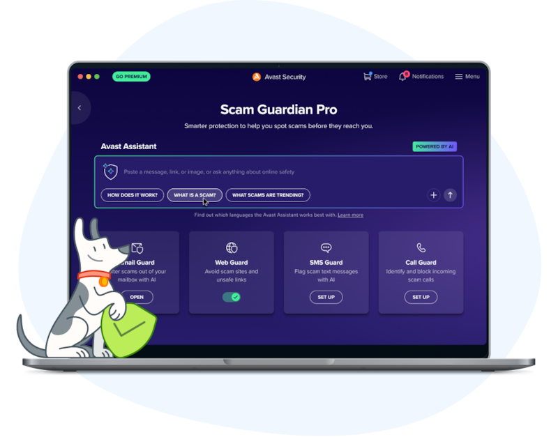 Se suspeitar que uma mensagem ou oferta online está tentando enganar você, nosso Assistente Avast pode ajudar a identificar se é um golpe. Ele oferece orientações fáceis de entender em tempo real.